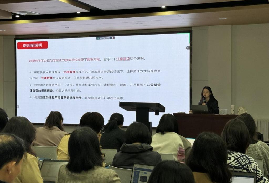 为提升教师队伍运用新一代信息技术教学,推动我院课堂教学模式创新。4月9日下午2点工学院于信工楼协同创新中心2016开展超星“一平三端”智慧教学系统课堂教学改革培训会议。培训由王龙瑶老师担任主讲,工学院院长田恒义、副院长蒋丽丽及全体教师参加了本次会议。