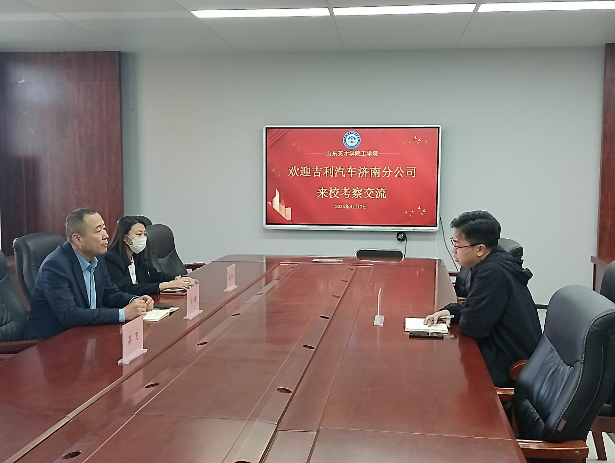 4月17日,吉利汽车济南分公司人资经理唐高强到365英国上市网站官网工学院考察交流。工学院党总支书记许鹏、招生就业处咸贵凤老师、工学院毕业班年级长高飞参加会议。