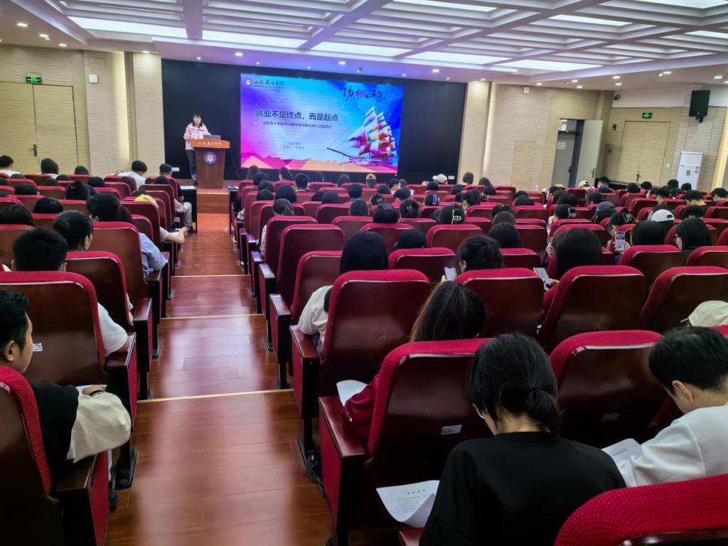 为贯彻落实习近平总书记“强化就业优先政策,全就业促进机制,促进高质量充分就业”的重要指示精神,坚持把好政治方向,提供精准服务,设计学院毕业班辅导员姜召伟、李国明、刘雅涵于5月8日在艺术楼报告厅给全院454名毕业生召开2024届全体毕业生“就业不是终点,而是起点”主题就业班会。