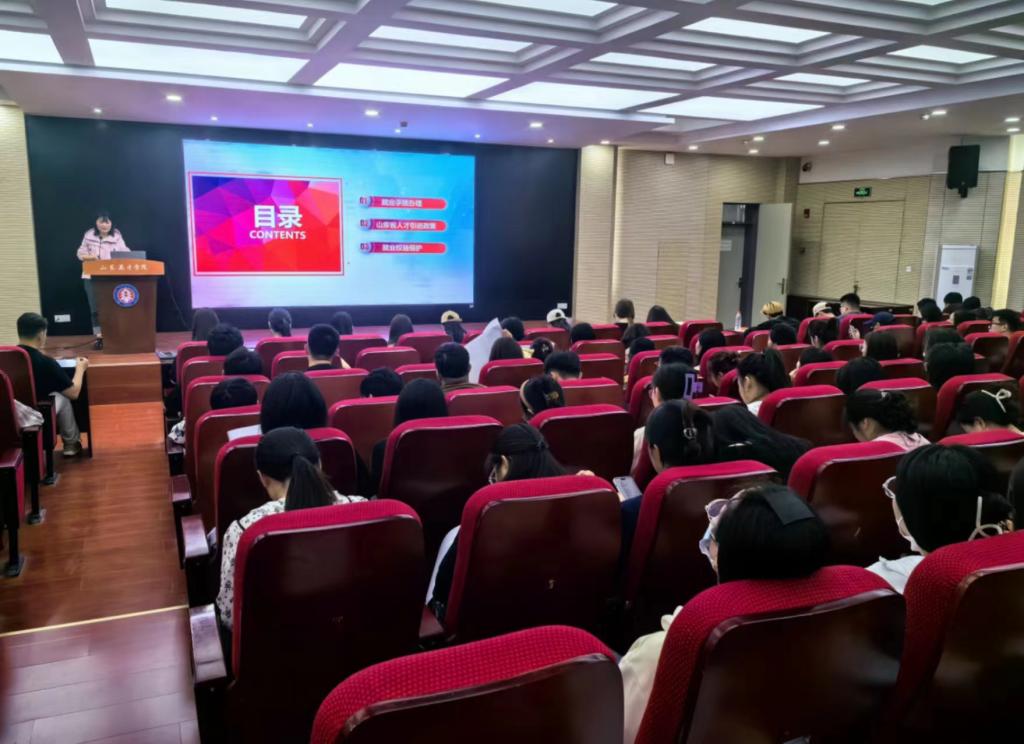 同时,为同学们讲解了就业办理手续、山东省人才引进政策、就业权益保护等内容,通过实例解析了行业的需求和对个人能力的要求,帮助毕业生更好地瞄准用人单位的期望。
