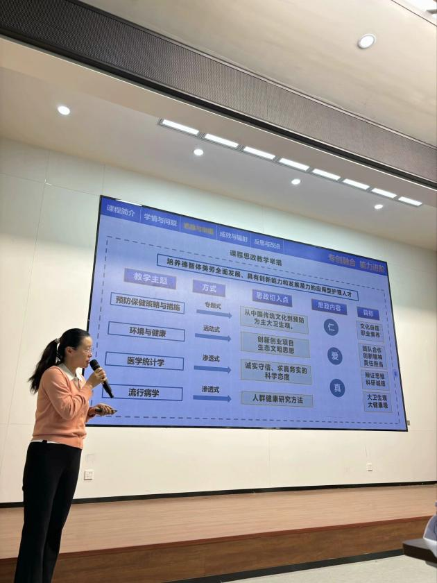 王辉副教授从课程简介、学情与问题、思路与举措、成效与辐射、反思与改进五个方面分享了她的课程创新设计。韩丽丽副教授从课程概述、学情与痛点、创新举措、诚信成效、创新特色五个方面围绕课程创新展开阐述。两位教授结合个人教学创新实践分享了经验与感悟,和与会教师针对教学创新中遇到的问题、存在的疑惑进行了深入探讨。