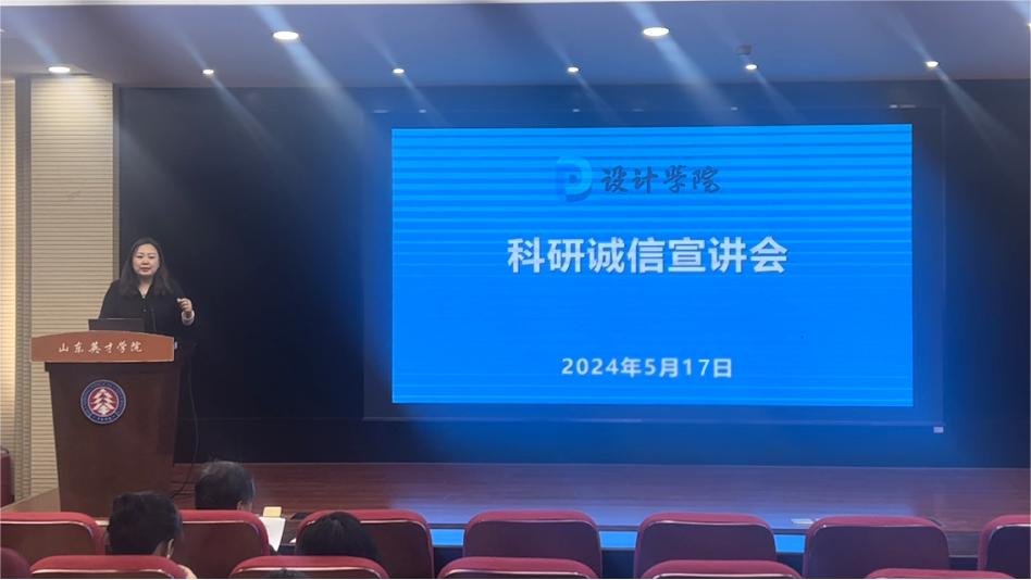 为深入贯彻落实科研诚信精神,提升全院师生的科研道德水平,2024年5月17日,设计学院在学术报告厅举行了科研诚信宣讲主题活动。此次活动旨在通过宣讲科研诚信的重要性,强化师生们的科研道德观念,促进学院科研工作的健康发展。设计学院党总支书记、院长周长积,全体教师参与了此次宣讲活动,教学副院长郝莹主持本次宣讲活动。