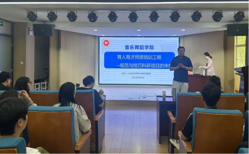 为了进一步提高音乐舞蹈学院科研项目申报质量,推进科研工作持续有效开展,提升教师科研水平。5月22日中午,我院举办规范与技巧——科研项目的申报主题讲座,本次讲座聘请山东艺术学院舞蹈学院李丽娜副教授主讲,吴可畏院长主持,全体青年教师参加。