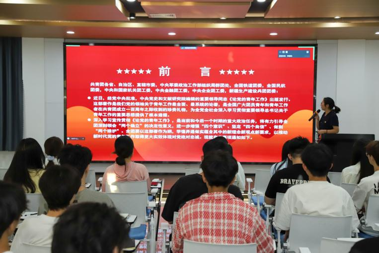 专题授课环节,工学院年级长高飞、王莹莹、张国栋带领大家深入学习了习近平新时代中国特色社会主义思想、党史发展历程、新时代共青团员的政治认同与青年担当,学生党支部委员尚婷婷、杨佳昕、贾楠,辅导员李祎斐与大家共同学习《习近平与大学生朋友们》《论党的青年工作》等重要论著、共青团史、共青团基础团务知识和规章制度等内容。