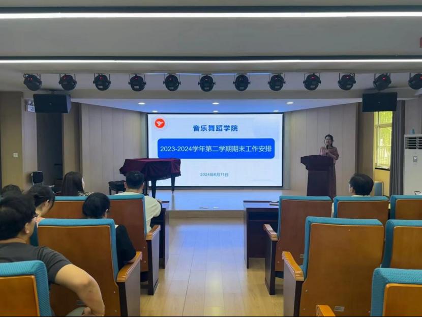 为全面做好期末教学管理工作,明确期末各项工作职责与目标。6月11日下午,音乐舞蹈学院在艺体中心多功能厅召开期末工作安排会,本次会议由执行院长巩丽主讲,吴可畏院长主持,全体教师参加。