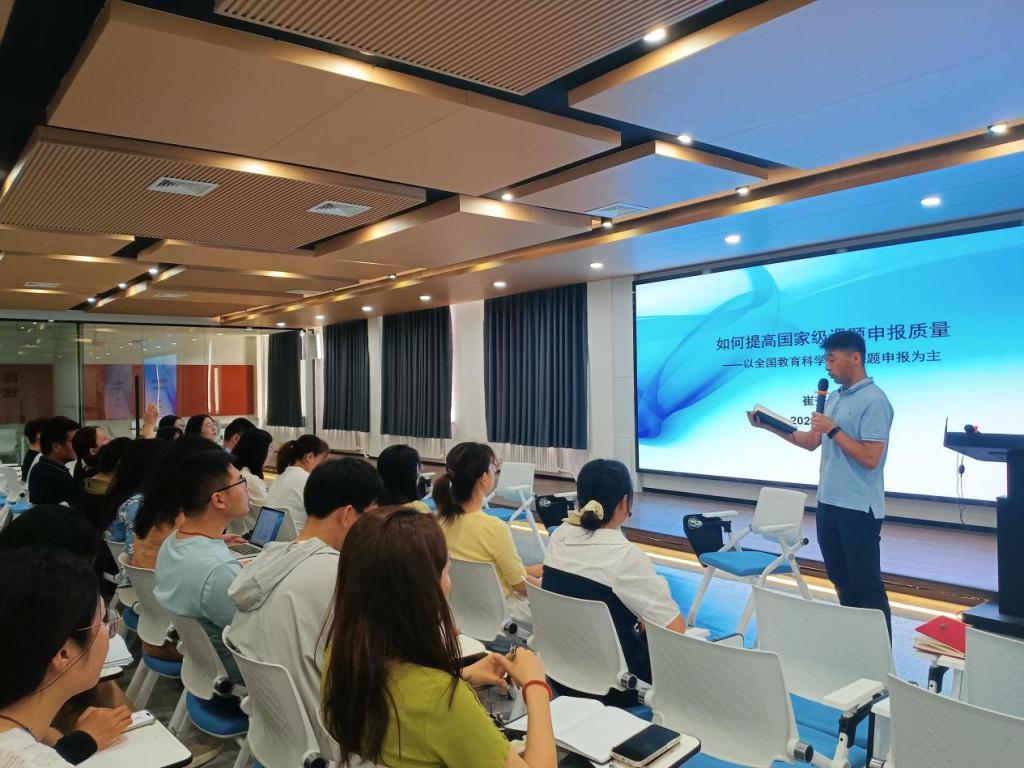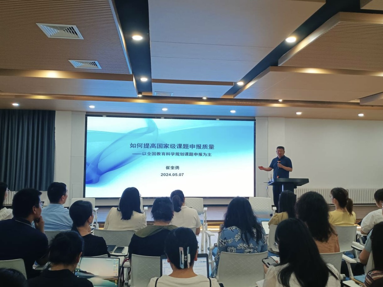 会上,副校长崔奎勇结合自身多年经验,主要从正确认识课题、课题资源来源、如何做好课题申报、加快提升科研素养四个方面展开。阐明了科研项目对教师职业生涯发展的意义,强调了课题开展的重要性和必需性,鼓励大家多关注新事物,多申请,多尝试,积极准备课题申报。为了提高项目申报成功的概率,他建议大家在紧跟热门选题的基础上,不要忽视各项目来源单位发布的科研项目指南和资助信息。