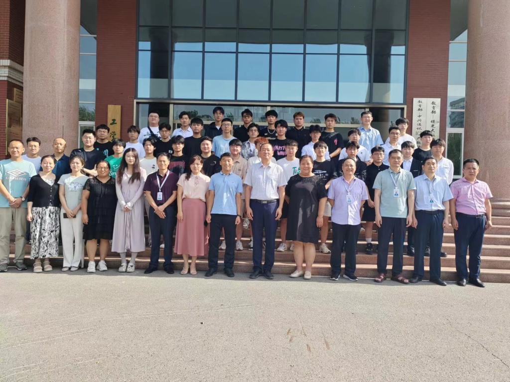 工学院田恒义院长、许鹏书记、平建副院长与实习指导老师、辅导员及华晟驻校工程师团队与学生合影留念。
