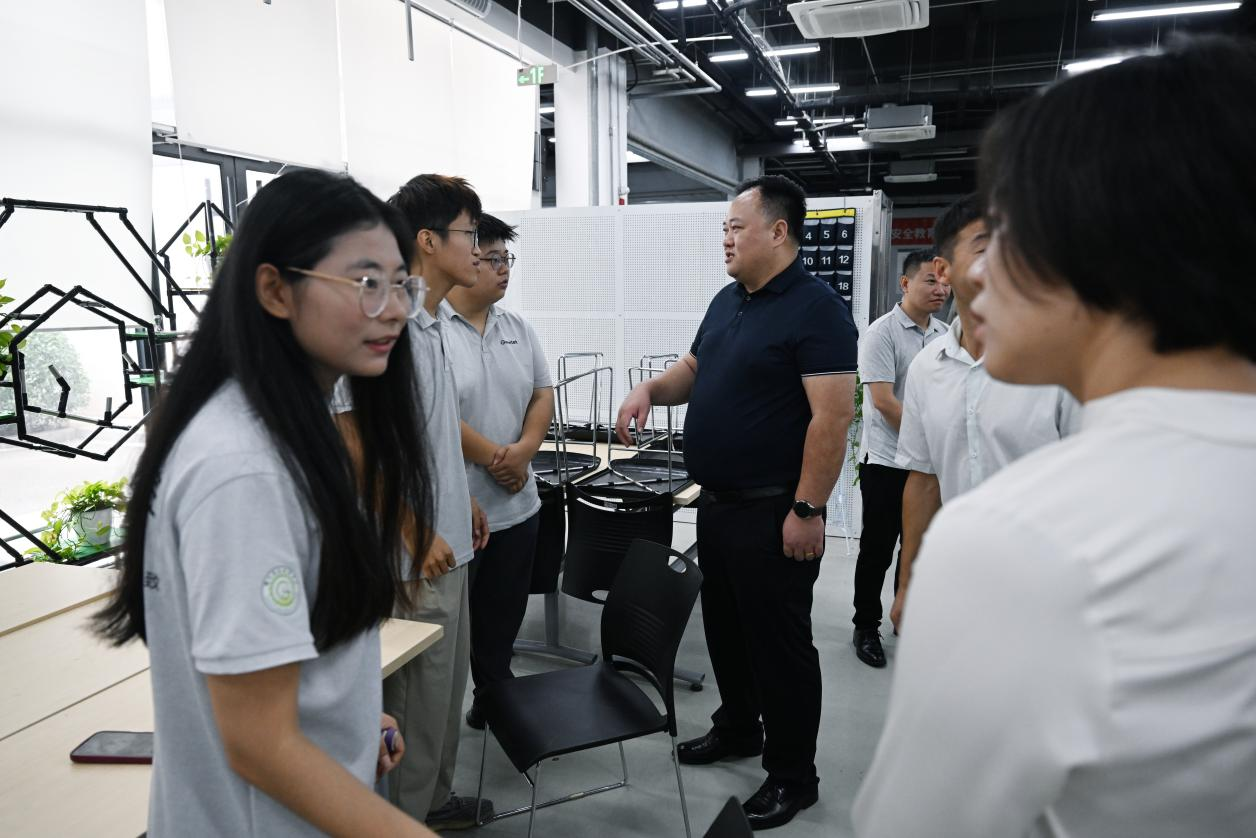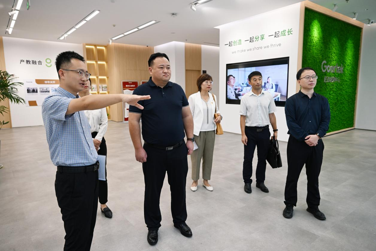 在企业领导的引导下,常务副校长刘卫东一行参观了歌尔工学院展馆及教学做一体化实训室,产教融合总监李高峰对歌尔工学院的成长历史、发展状况、匠造人才培养及教学模式进行了详细介绍。刘卫东常务副校长对歌尔工学院产教融合办学模式和“三段式”匠造人才培养及教学模式给予充分肯定。学校领导还看望了在此生活和学习的学生,听取了学生们的学习体验心得,鼓励他们努力学习知识技能,争取成长为未来产业匠心人才。