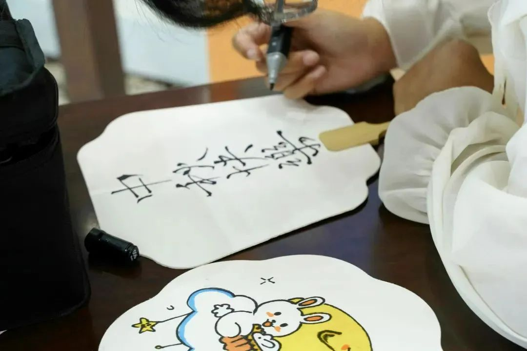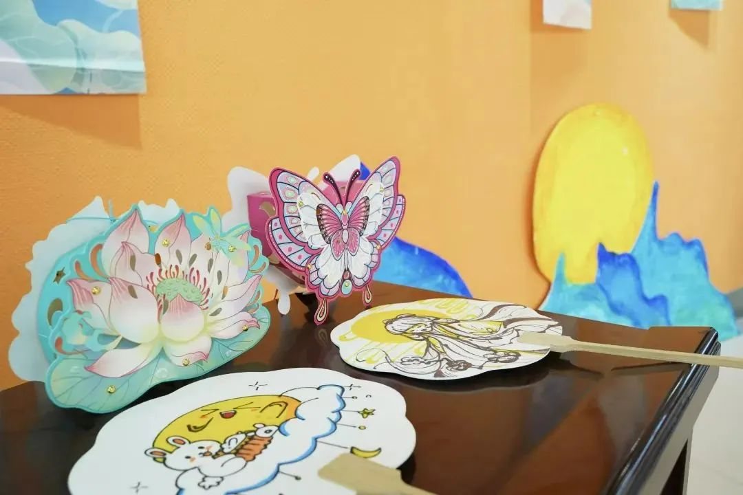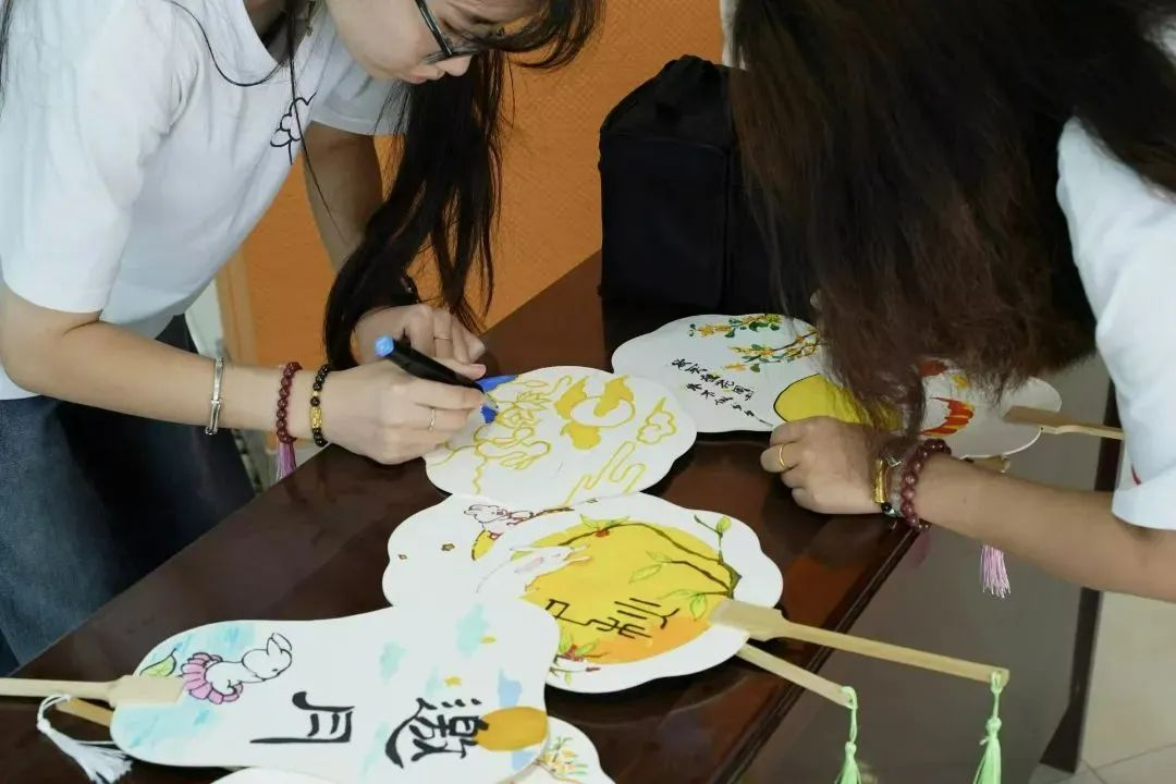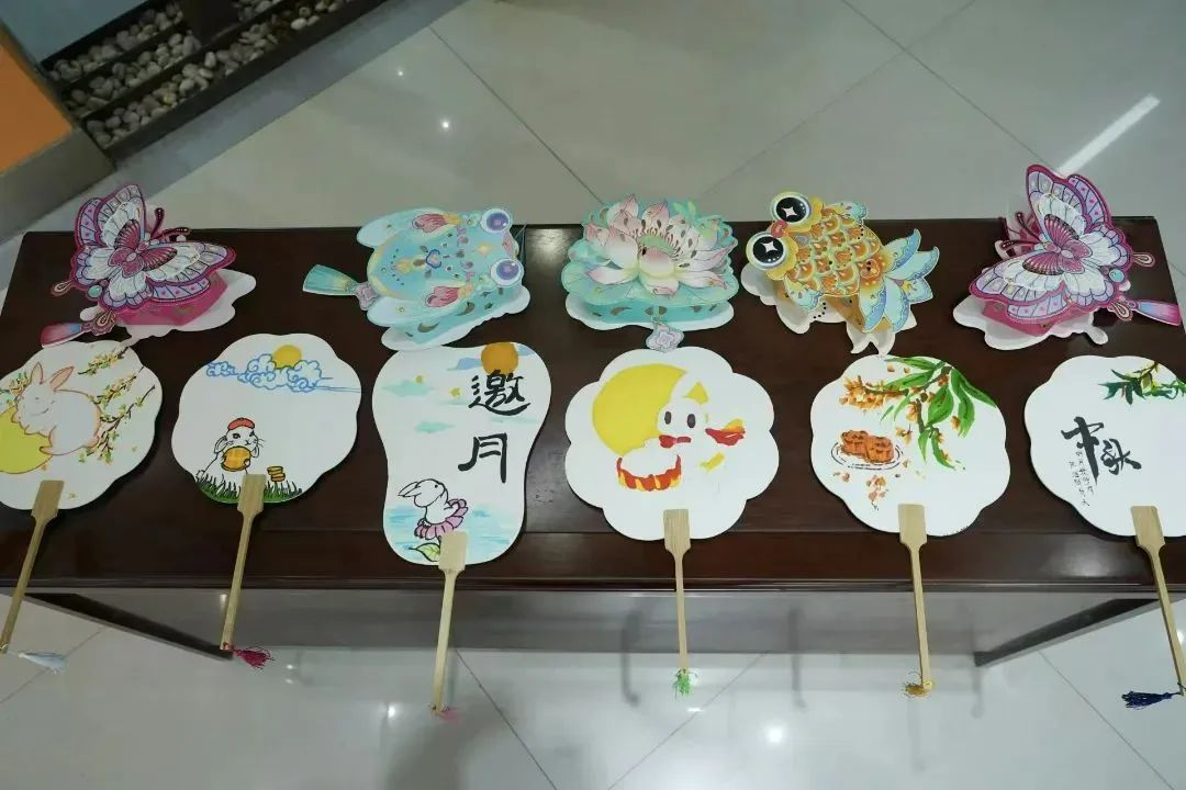 一把团扇,一支画笔,让参加活动的同学们们开启了一场妙趣横生的创作之旅。在时间的流逝中,慢慢摸索到绘制的技巧,全身心沉浸在绘制团扇的乐趣中。一笔笔地仔细描绘,细心渲染,用缤纷色彩点缀扇面,通过大家精心制作,一把把独具一格、富有寓意的精美团扇就呈现在了大家面前。栩栩如生的玉兔寄予中秋的美好祝福,斑斓丰富的团扇传达着合欢圆满的美好祝愿。