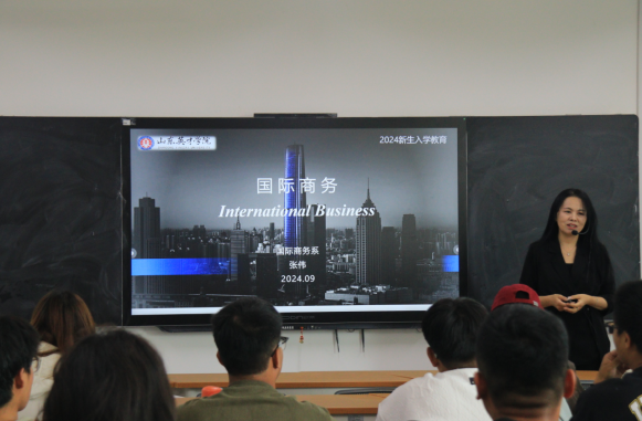 国际商务系张伟老师则围绕“全球化背景下的国际商务管理”这一主题,向新生们介绍了国际商务管理专业的特点、学习内容及国际交流机会。张老师强调了跨文化沟通、国际市场营销和国际贸易实务等关键技能的培养,并分享了多位校友在国际商务领域的成功案例,激发了新生们对国际舞台的向往和追求。