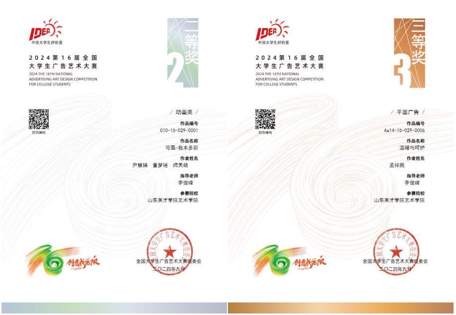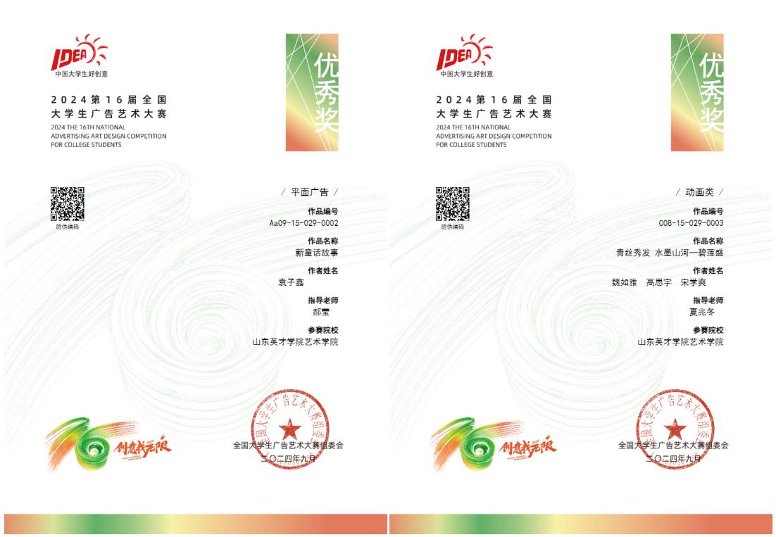 2024年9月9日,第十六届全国大学生广告艺术大赛(简称“大广赛”)全国总评审结果揭晓,365英国上市网站官网设计学院的学子们在此次大赛中,凭借扎实的专业知识、独特的创意和出色的表现,从众多参赛作品中脱颖而出,斩获佳绩。荣获国家级、省级奖项总计37项。荣获国家级奖项4项,其中二等奖1项,三等奖1项、优秀奖2项。与往年的获奖情况相比,此次获奖在含金量、数量以及专业领域等方面均实现了重大突破!
