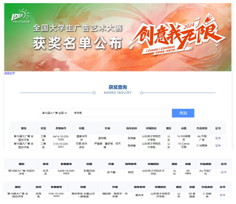 全国大学生广告艺术大赛作为教育部第一个文科类大学生竞赛项目,该赛项以企业真实营销项目为命题,真题真做,沟通产学,大大提升了学生的创新实践能力。本次大赛成绩的取得,充分展现了设计学院学子的创新能力和扎实的专业素质,也是学校应用型人才培养的成果。学院将继续以学科竞赛为抓手,积极组织学生参与学科竞赛,以赛促学,提高学生实践能力和创新素质,最大程度地激发学生的学习兴趣,磨炼学生的实践应用能力。