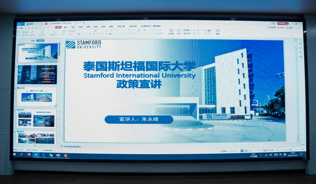 为给学生提供更广阔的发展路径,满足学生的发展需求,促使学生做好未来学业规划,普及留学信息,拓宽国际视野,10月31日我院于工学院协同创新中心开展泰国斯坦福国际大学留学宣讲会,本次宣讲会由朱永峰老师为同学们进行交流分享与指导。
