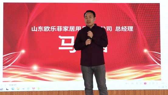 随后,山东欧乐菲家居用品有限公司总经理马磊发表了致辞。他首先对商学院及获奖学生表达诚挚感谢,并对学生们在比赛中展现出的创新精神和实践能力给予了高度评价。马总还鼓励学生们在未来的学习和工作中继续发扬创新精神,勇于迎接挑战。