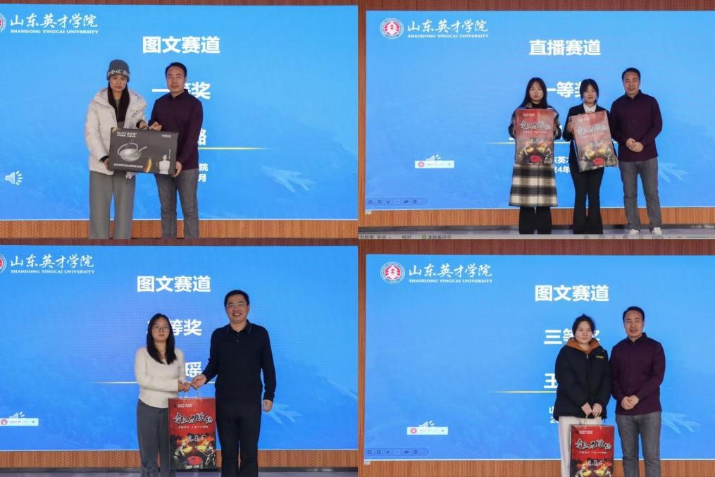 大赛自启动以来,得到了英才学子们的热烈响应,经过激烈的角逐和公正的评选,最终,来自商学院的多名学生脱颖而出,分别荣获图文赛道和直播赛道的一、二、三等奖。王青青同学凭优秀图文营销方案获图文赛道三等奖,朱瑶瑶同学以独特创意摘得二等奖,韩璐同学则因出色的市场调研和营销策略设计荣膺一等奖。直播赛道方面,张涵玥与何依萌同学凭借卓越的应变能力和团队精神共获一等奖。此外,国际商务系张玲老师荣获优秀指导教师奖,其悉心指导广受师生赞誉。