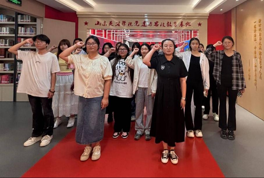 活动特别设置入党宣誓环节,师生面向党旗庄严宣誓:“我志愿加入中国共产党,拥护党的纲领……”铿锵誓言回荡在宣誓厅内,传递出新时代青年传承红色基因、勇担时代重任的坚定信念。