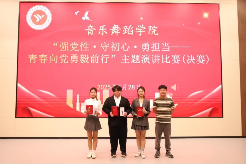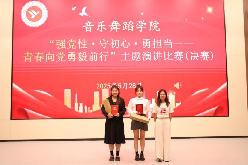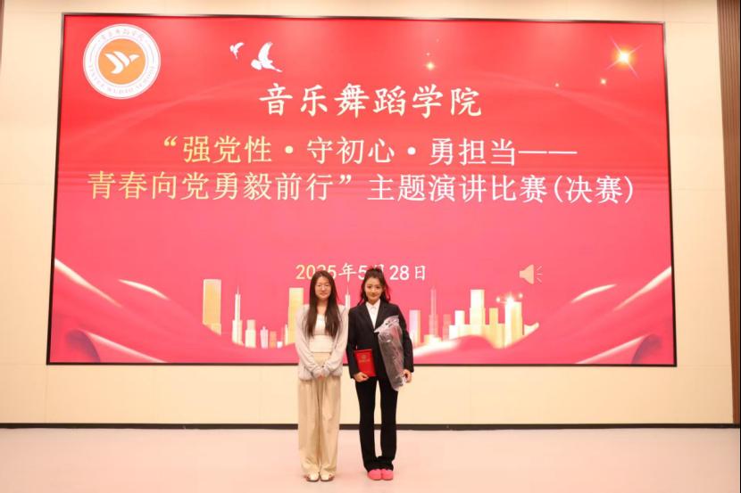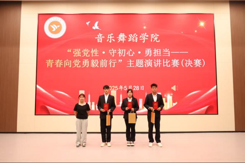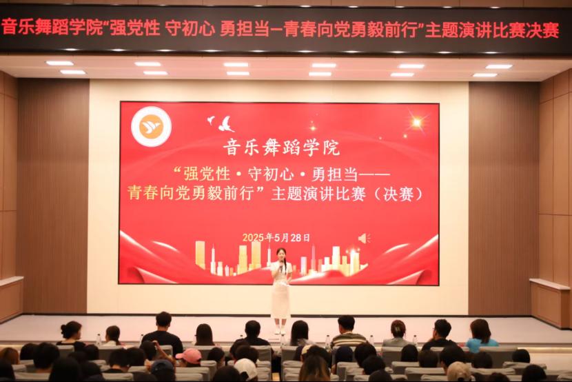 2025年5月28日,音乐舞蹈学院“强党性·守初心·勇担当——青春向党永毅前行”主题演讲比赛在学术报告厅圆满结束。此次比赛不仅是一场语言艺术的较量,更是音乐舞蹈学院学子们对党忠诚、坚守初心、勇担使命的精神风貌展示。
