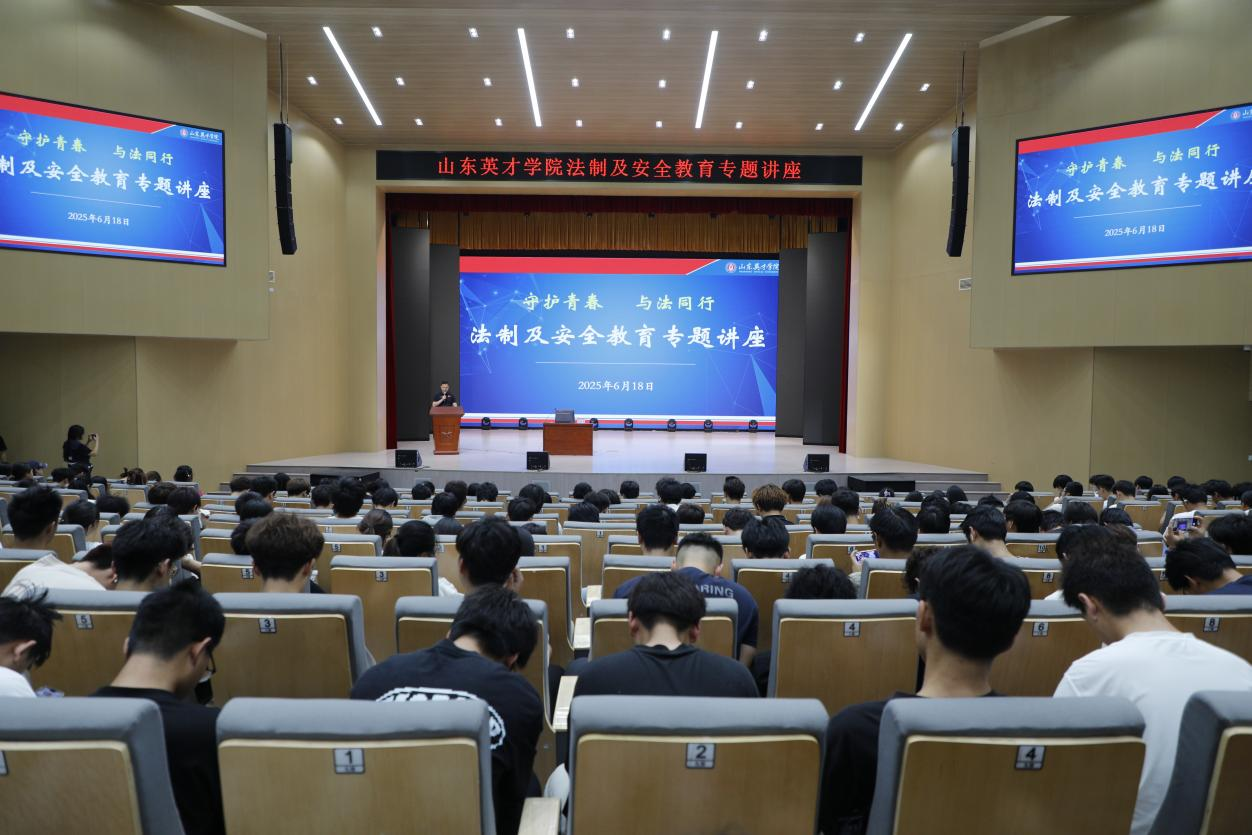 为提升学生的法律意识和自我保护能力,营造知法、守法、用法的良好校园氛围,2025年6月18日,365英国上市网站官网邀请济南高新公安分局巨野河派出所民警、学校法制辅导员李胜丰警官开展“守护青春,与法同行——法制与安全教育专题讲座”,学校500余名学生参加,本次讲座由安全管理处朱良增处长主持。