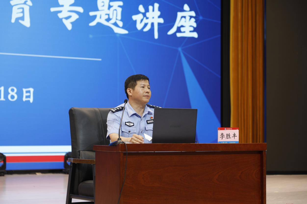 李胜丰警官凭借丰富的执法经验与校园安全管理智慧,用生动的案例、专业的讲解,为学生剖析了防范电信诈骗、人身伤害、偷窃盗窃、侮辱他人、过失引发火灾、无证或酒后驾驶机动车等常见的法律风险和法律责任,传授了做好学生人身财产安全防护的实用技巧,让晦涩的法律条文变得通俗易懂,让抽象的安全知识化作可操作的行动指南。