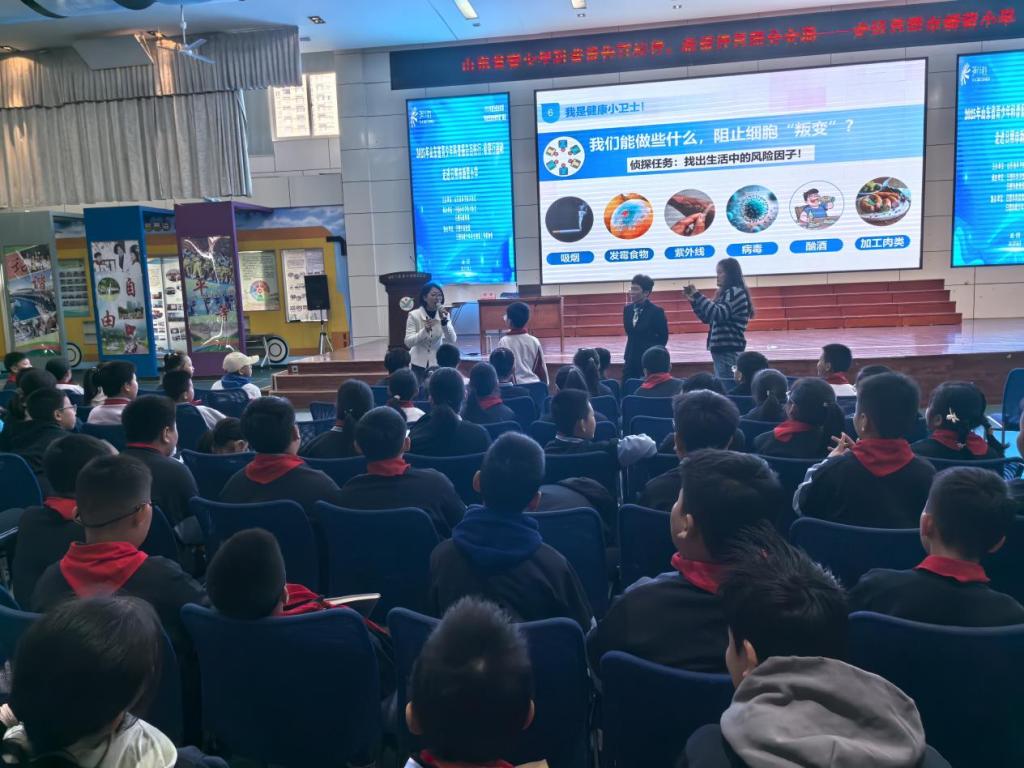 科普报告不仅传授科学知识,更注重启发学生的科学思维,鼓励学生勇于提问、大胆探索。报告会上,徐莉老师以“召唤健康卫士”为主题,为日照市新营小学、东港区南湖镇中心小学、五莲县行知实验小学、莒县博雅实验学校、岚山区岚山头小学的同学们开启了一段奇妙的人体细胞科学探索之旅。徐老师运用生动形象的语言、直观清晰的图片以及贴近生活的案例,深入浅出地讲解了生命与健康的奥秘。现场气氛活跃,思维碰撞不断,在孩子们心中播下了热爱科学、崇尚真知的种子。