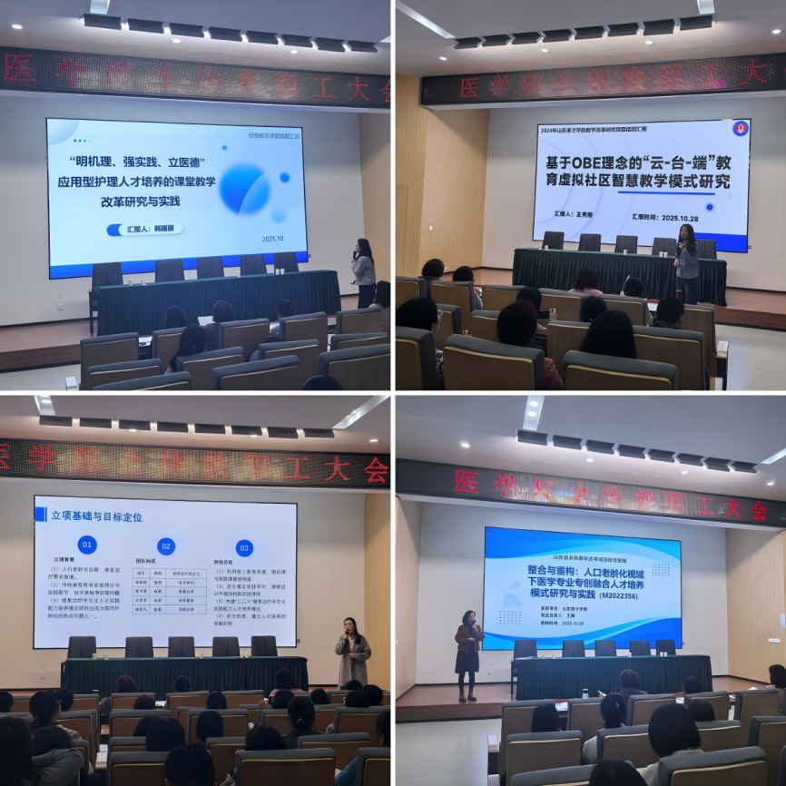 本次评审内容涵盖两大板块:一是对2022-2023年度立项的5项教改课题进行结题验收,这些项目聚焦于人才培养模式创新、课程思政深度融合、智慧教学平台构建等前沿方向,全面展示了学院近期的教改成果;二是听取2025年度济南市重点教改项目“三元交互机制下护理专业数智融合教学范式的智慧创生路径构建研究”的开题汇报,该项目直面教育数字化浪潮,旨在构建新型教学范式,体现了医学院教改工作的持续创新力与前瞻性。