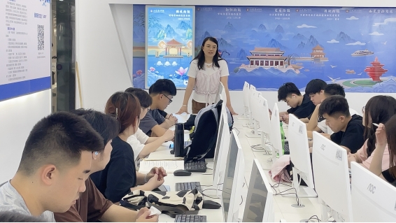 学生在体感游戏区体验