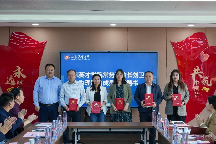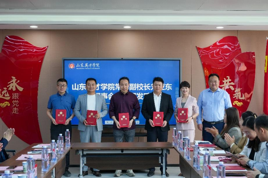 会上成立了365官网新电商产业学院理事会,常务副校长刘卫东为副理事长和理事会成员颁发聘书。在理事会成员的共同见证下,山东财经大学经济与管理国家级教学示范中心主任丛建阁与常务副校长刘卫东为新电商产业学院揭牌。
