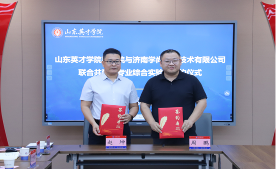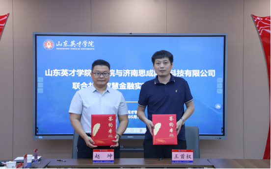 随后,在全体领导老师的共同见证下,商学院(国际学院)赵坤院长分别与学尚信息技术有限公司周鹏总经理、思成网络科技有限公司市场部总监王首权签约。