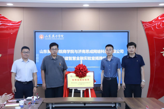史戈副处长、赵坤院长与孙琪总经理、周鹏总经理共同为跨专业综合实验室、智慧金融实验室揭牌。