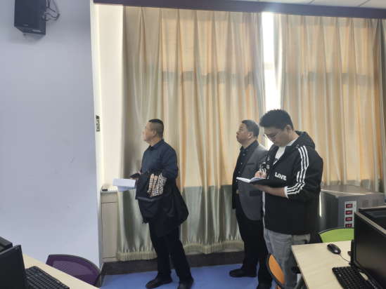 为切实保障师生员工生命财产安全,积极响应省市教育主管、公安机关、应急管理、消防救援等部门对于学校安全管理工作的要求,10 月 30 日,北校区全面开展了一场深入且细致的安全大检查。在此次检查中,教务处王永强老师、史戈处长深入商学院实验中心,对实验室安全进行重点检查。中心高度重视,由郭金虎主任,马敬辰老师、谷禄老师、以及刘禄丰老师全程陪同。