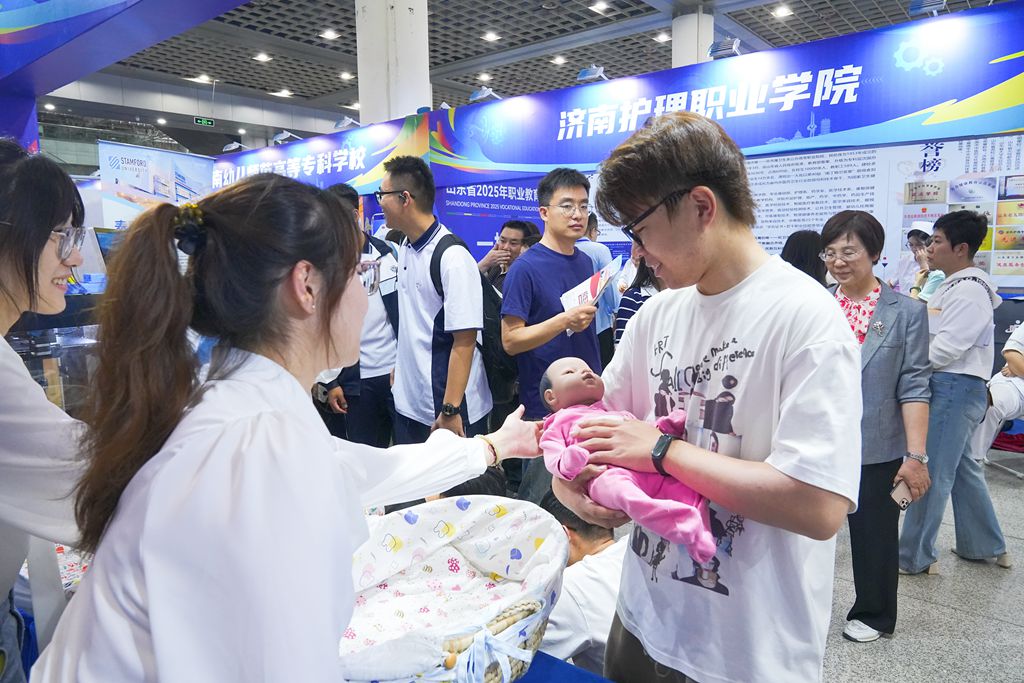 上午9时,活动举行启动仪式。启动仪式结束后,与会领导嘉宾现场观摩职业教育展示体验活动。山东省委教育工委委员,省教育厅党组成员、副厅长李鹏等领导一行来到学校展区前,认真察看学校智能婴幼儿仿真模型等特色育人项目,详细了解学校推动实验教学与真实场景融合的教学实践,对学校智能化、现代化教学手段给予肯定和赞赏。