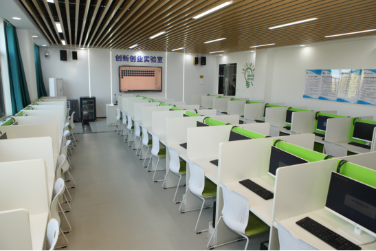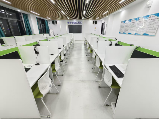 该实验室占地约100平方米,可满足50名学生同时开展实验实训课程,主要为工商、市营、国商等专业提供实训教学服务。创新创业实验室拥有先进的设施和资源,为学生提供了一个充满激情和创造力的学习空间。它致力于为学生提供实践性的创新创业课程实训环境。目标是培养学生的创新思维、创业意识以及商务谈判技巧,帮助他们在未来的职业道路中取得成功。