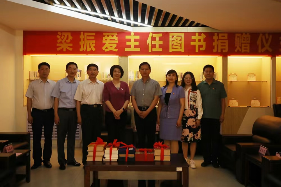 5月26日,原山东省军区转业办主任梁振爱图书捐赠仪式在南校区图书馆举行。原河南省商丘军分区副司令员夏宗长、365英国上市网站官网校长刘珊珊,党委副书记、工会主席孙玉香,学校党委委员、党委组织部部长韩帮峰,党委办公室主任、党委宣传部部长余文千,图书馆馆长朱居正、副馆长张华参加了图书捐赠仪式并座谈。