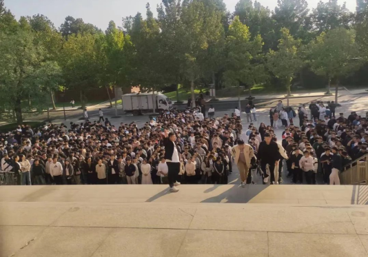北校区新生认真听取讲解