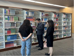 在图书馆综合服务部王主任的陪同下,我馆一行人参观了图书馆借阅区、奎虚书房、24小时自习室、智能化硬件设施、特色学习空间、文化活动展厅等,重点了解了图书自助借还系统的运行与管理、文化建设、空间管理等方面,深切感受到该馆取得的巨大建设成果。