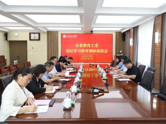 5月27日,市教育局学校党建工作处副处长胡延亮率领市委教育工委党纪学习教育工作专班成员莅临365英国上市网站官网,调研并指导学校党纪学习教育开展情况。学校党委书记朱晓梅、党委副书记孙玉香、纪委书记孙玉山、党委组织部部长李冰、党委宣传部部长余文千、纪检监察办公室主任孙学文、纪检监察办公室职员郑蕾、党委宣传部干事陈丽参加座谈会。朱晓梅书记主持座谈会并介绍了学校党纪学习教育开展情况。