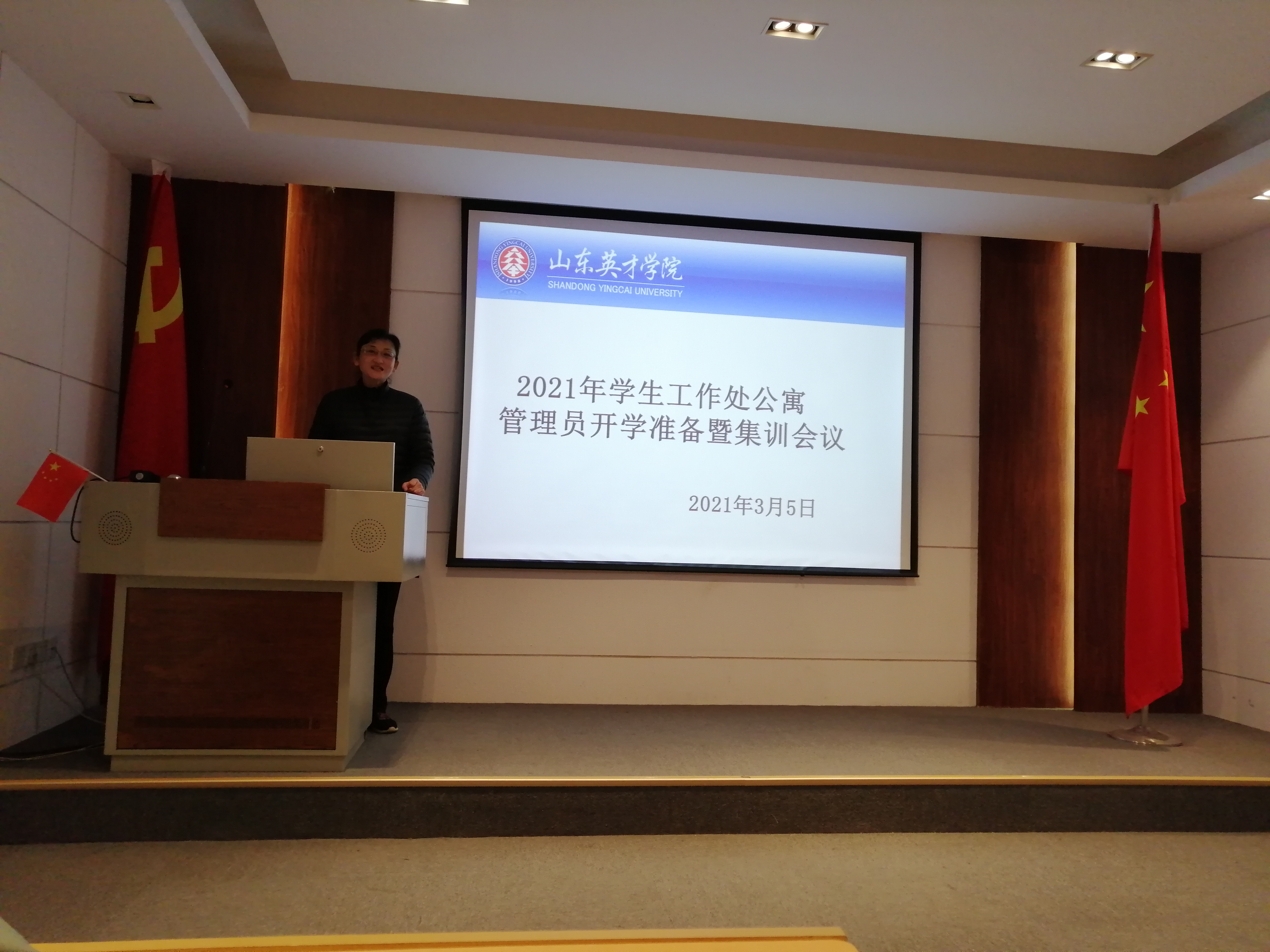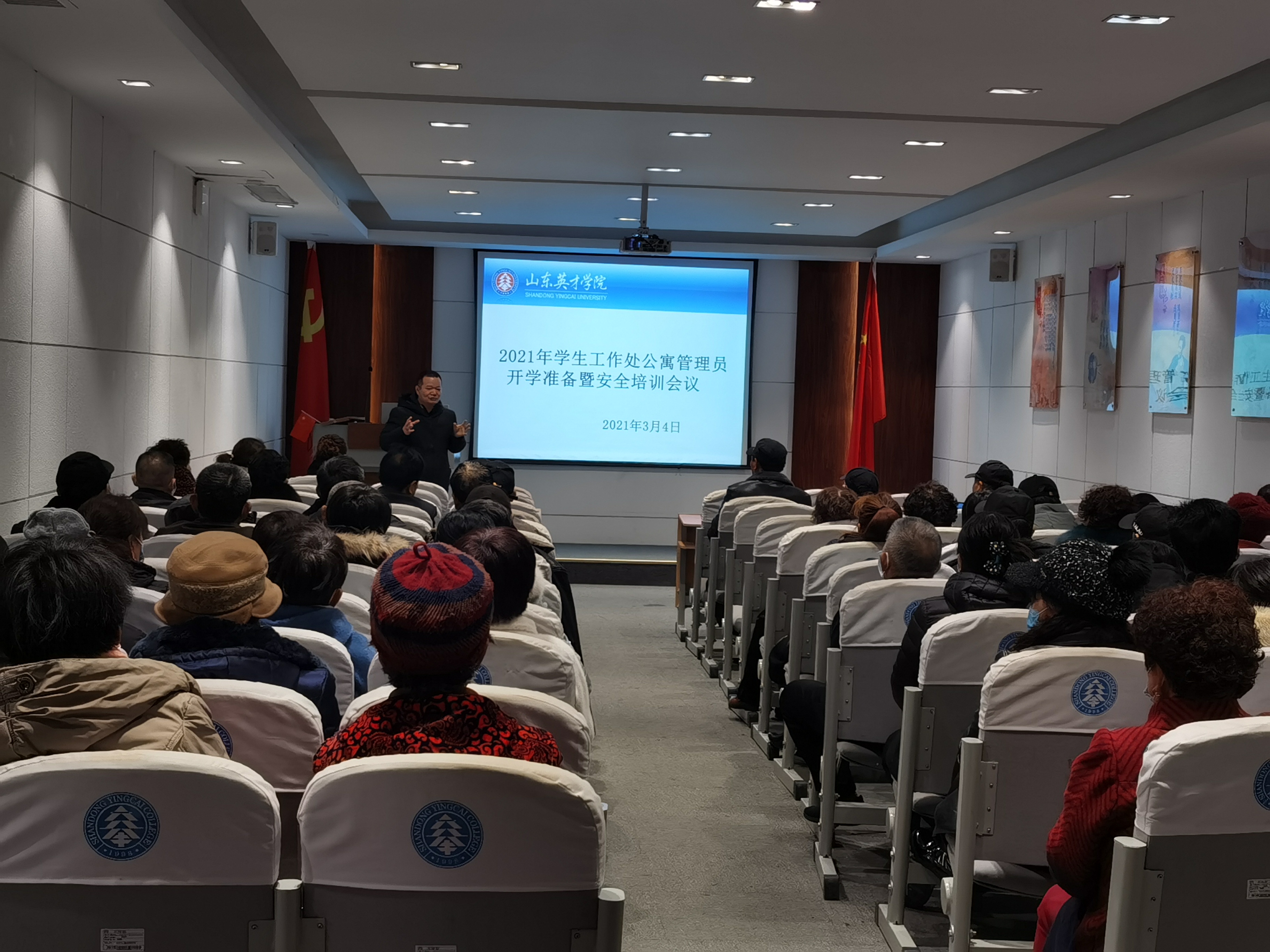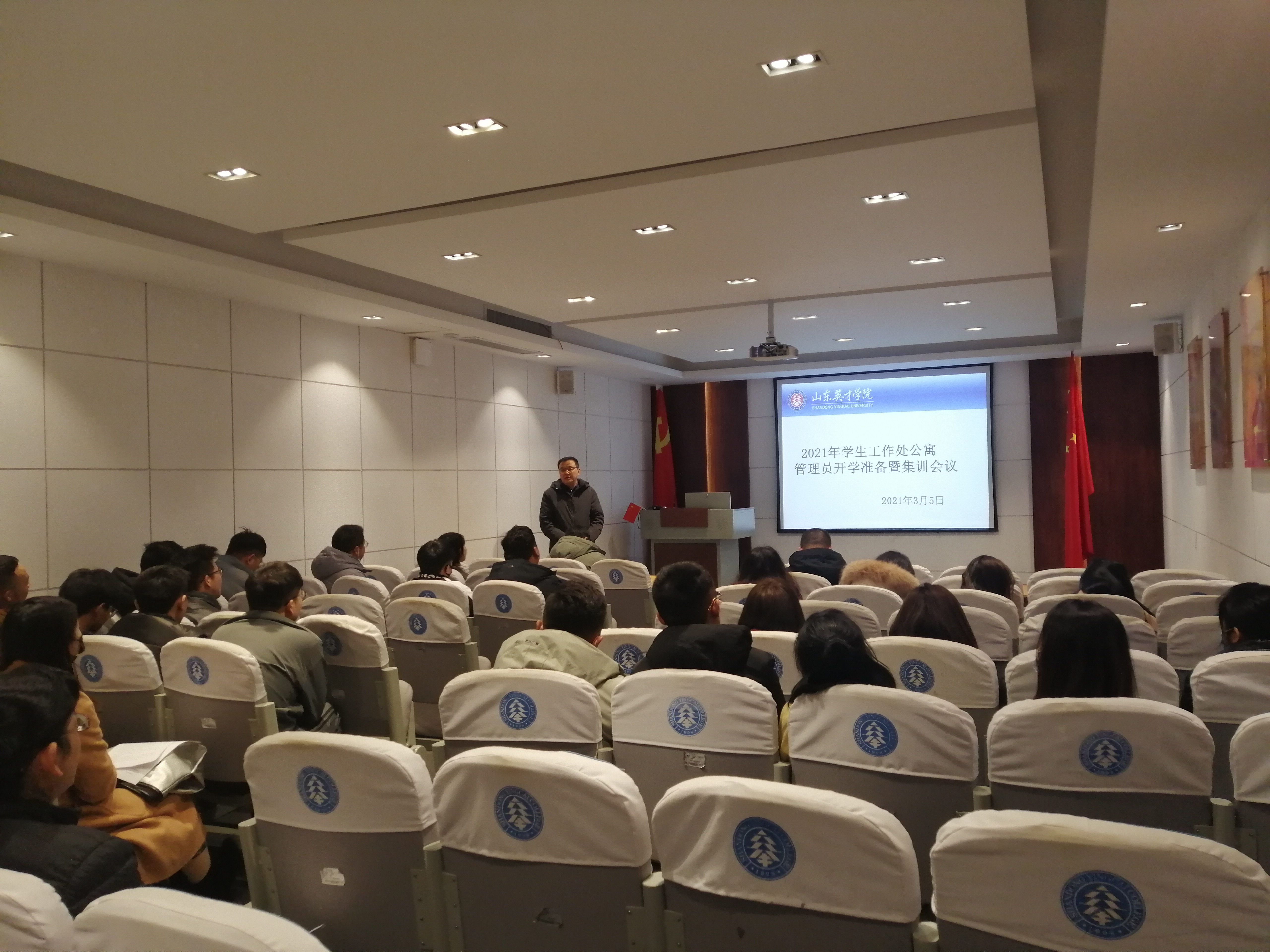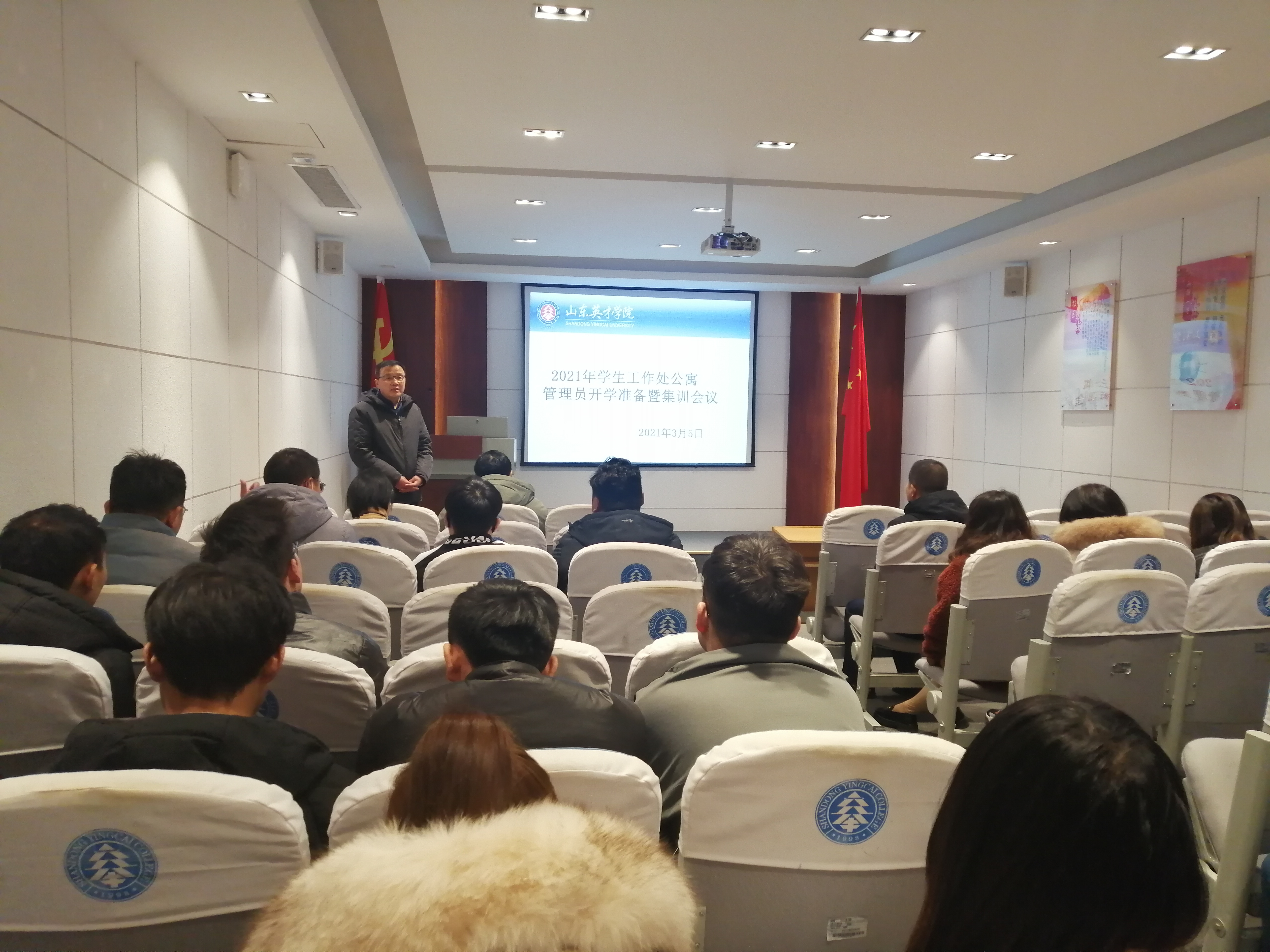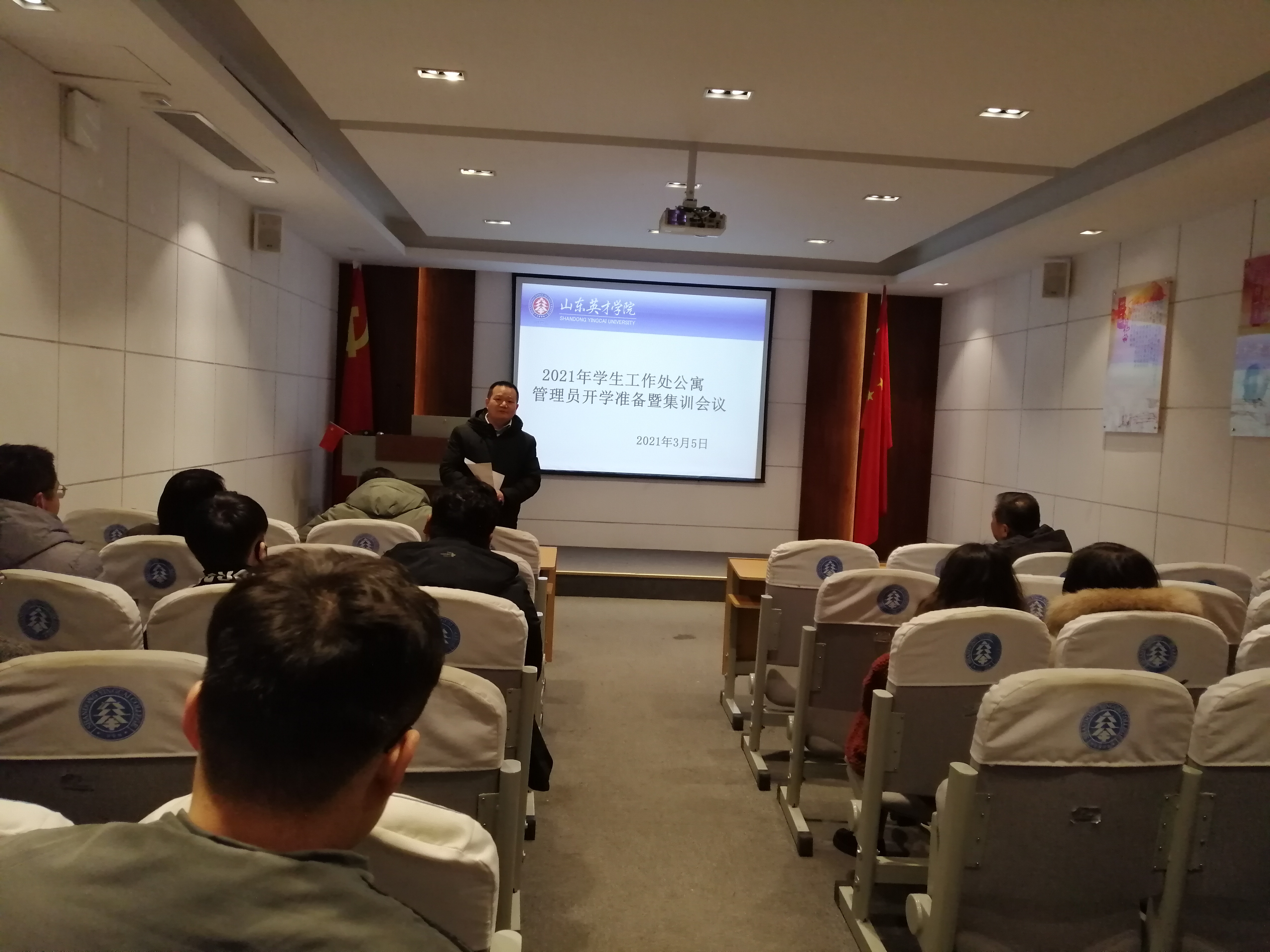 新学期,新开端,为做好2021年公寓各项住宿服务保障工作,让公寓管理员明确本年度工作目标及重点任务,有目的、有方向、有计划地为师生服务,学生工作处于2021年3月4日和3月5日在大学生活动中心四楼会议室召开新学期学生公寓开学准备暨安全培训会议,分别对物业管理员和新任公寓管理人员进行培训。梁庆文副校长、学生工作处龙新良处长、学生工作处杜春茂副处长、公寓管理服务中心周琳主任、安全管理处韩长江主任、马贤省主任、杜飞老师、王鹏老师及南北校区公寓管理工作人员参加了此次会议。会议由周琳主任主持。
