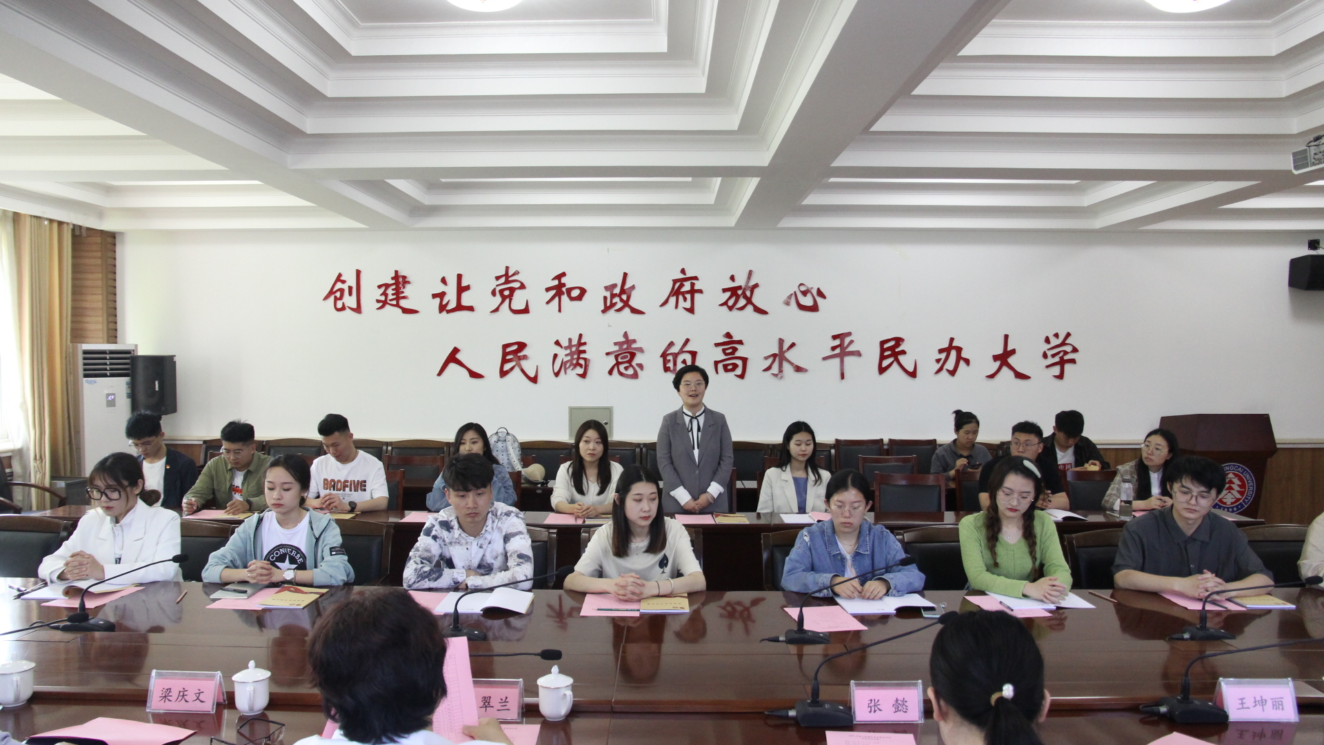 最后,梁庆文副校长对各位辅导员入职表示欢迎,同时对新入职辅导员提出了以下几点要求:一.尽快融入岗位,走好踏入社会的第一步,不辜负学校和集团的期望;二.踏实肯干,虚心向有经验的辅导员老师学习,干一行,爱一行,专一行,精一行;三.以学生为主,服务学生,和学生在一起;四.勇于担当,肩负责任,敢于直面困难。以此勉励大家在平凡岗位中孕育不平凡的业绩,用真实行动实现辅导员的育人梦和学生的成才梦。