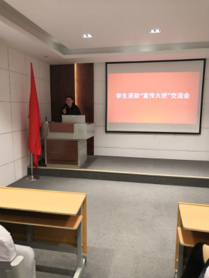 为加大学生资助宣传,传递党和政府的温暖,使得家庭经济困难的学生更有获得感和幸福感。根据全国学生资助管理中心的通知要求,学校在2018年12月4日在南校区大学生事务中心举行第二届“学生资助宣传大使”招募选拔活动,选拔国家奖学金、校长奖学金、省政府奖学金获奖学生担任“学生资助宣传大使”,开展资助政策回母校宣传、公益服务以及资助常态化宣传等活动。活动由学工部副部长邵占荣、学生资助管理中心老师陈玉玲、崔建花以及2017-2018学年国家奖学金、校长奖学金、省政府奖学金获得者34名学生参加。