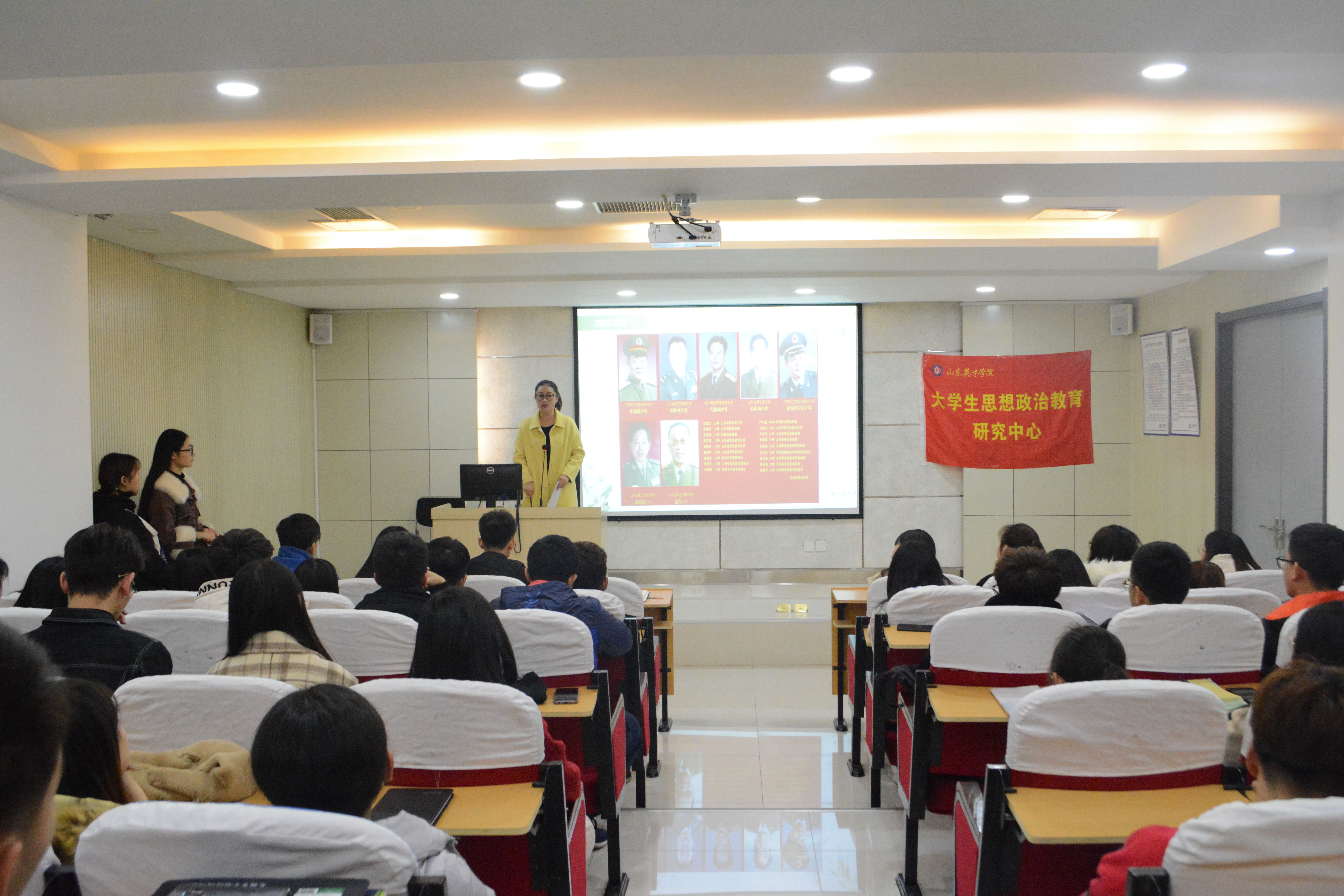 由吴玥老师上台为此次活动做开场,简明扼要地提出了开展本次活动的目的,不仅鼓励同学们多去了解“将军书屋”,知校爱校,更重要的是多主动开展大学生自主教育系列活动。接着,由大学生思想政治教育研究中心新媒体部部长傅凤霞带领大家走进“将军书屋”。用ppt和图片展示的形式,向大家介绍了“将军书屋”,让同学们对此有一个初步、具体的了解。并且有同学主动站起来发言,分别朗读了宋清渭上将、幸胜标少将、衣景清将军和赵太忠中将的生平事迹,现场气氛达到了高潮。在学习完将军事迹后,现场的同学主动分享了聆听之后的所思所悟:“我一直以为将军对我来说很遥远,并且是很威严、德高望重和可望不可即的存在,但是在学习完之后发现原来将军也是很平易近人的并且还很关心我们大学生,给我们捐赠了这么多的图书让我对他们产生了崇高的敬意。”在座的所有人都频频点头,表示认同,并给予了热烈的掌声。