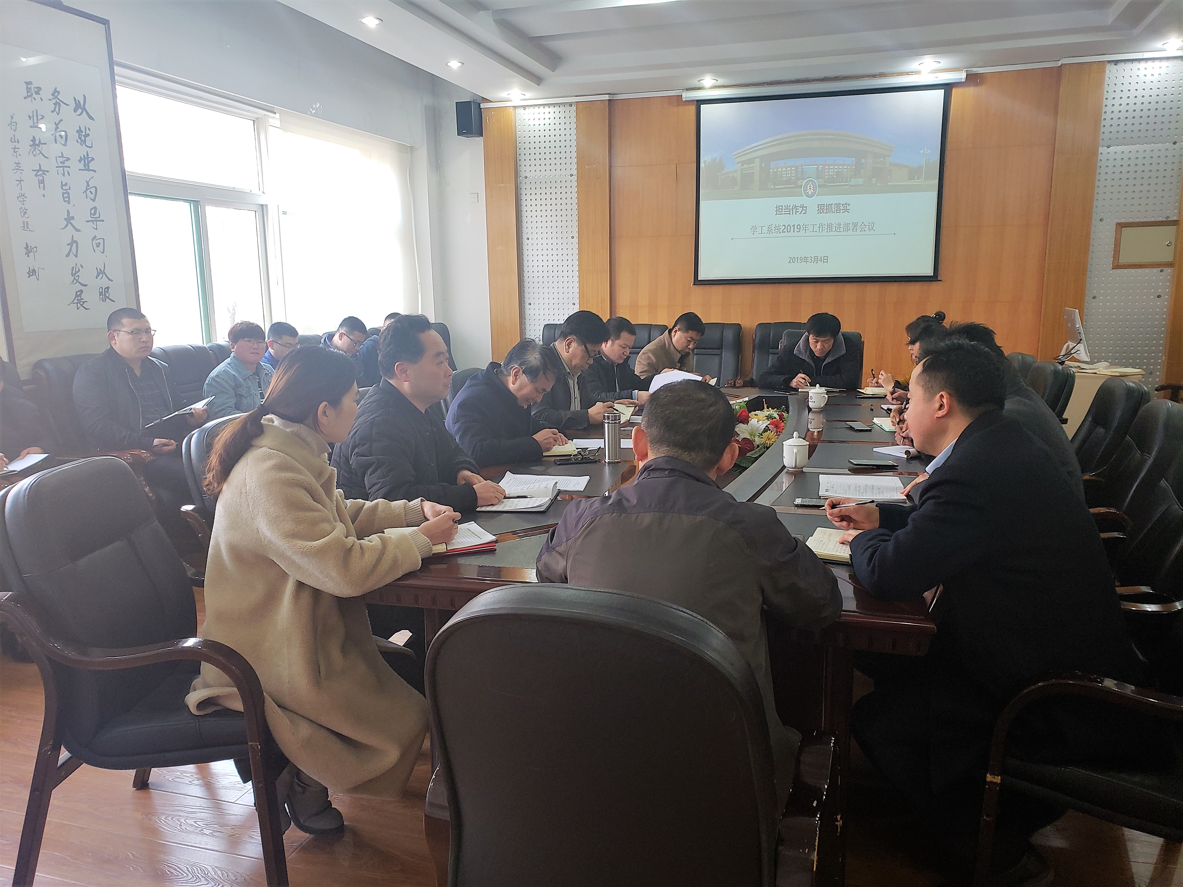 34日下午在第三会议室召开了新学期第一次学生工作会议“担当作为,狠抓落实---学工系统2019年工作推进部署会议”。出席本次会议的有学院张兴虎副院长,陈文华校长助理,安全管理处孙玉山处长,学生工作处(团委)龙新良处长以及南校区二级学院专职书记。