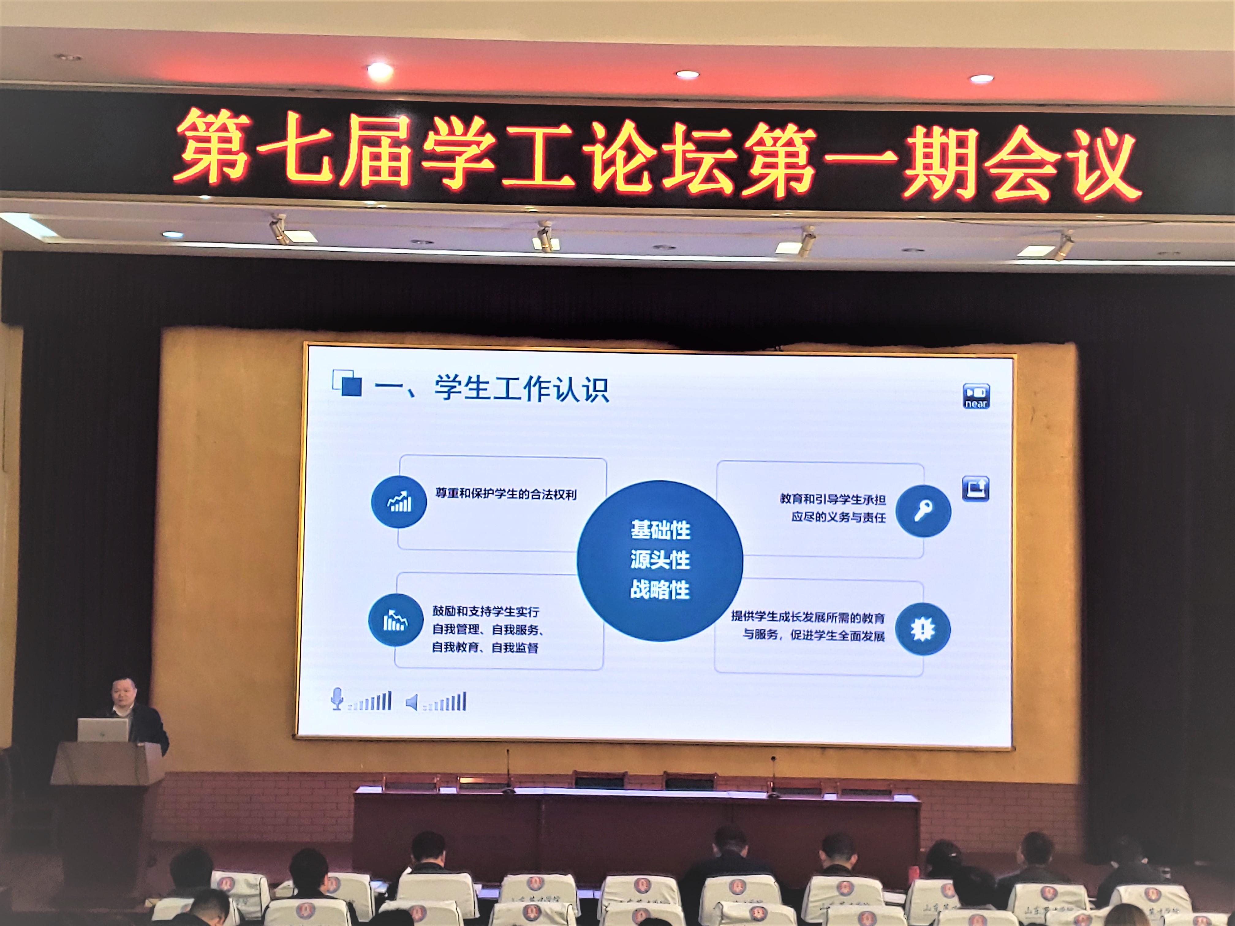 为贯彻落实全国教育大会精神,进一步提高365官网辅导员队伍的专业化和职业化,探索适应365官网辅导员队伍发展道路,3月12日上午,365官网举办了“担当作为 狠抓落实”365英国上市网站官网第七届学工论坛第一期工作会议。会议在南校区学术报告厅、北校区学术报告厅同步视频直播展开,二级学院专职书记(副书记)、基层团委书记、学生工作处(团委)全体人员和全校辅导员参加了会议。