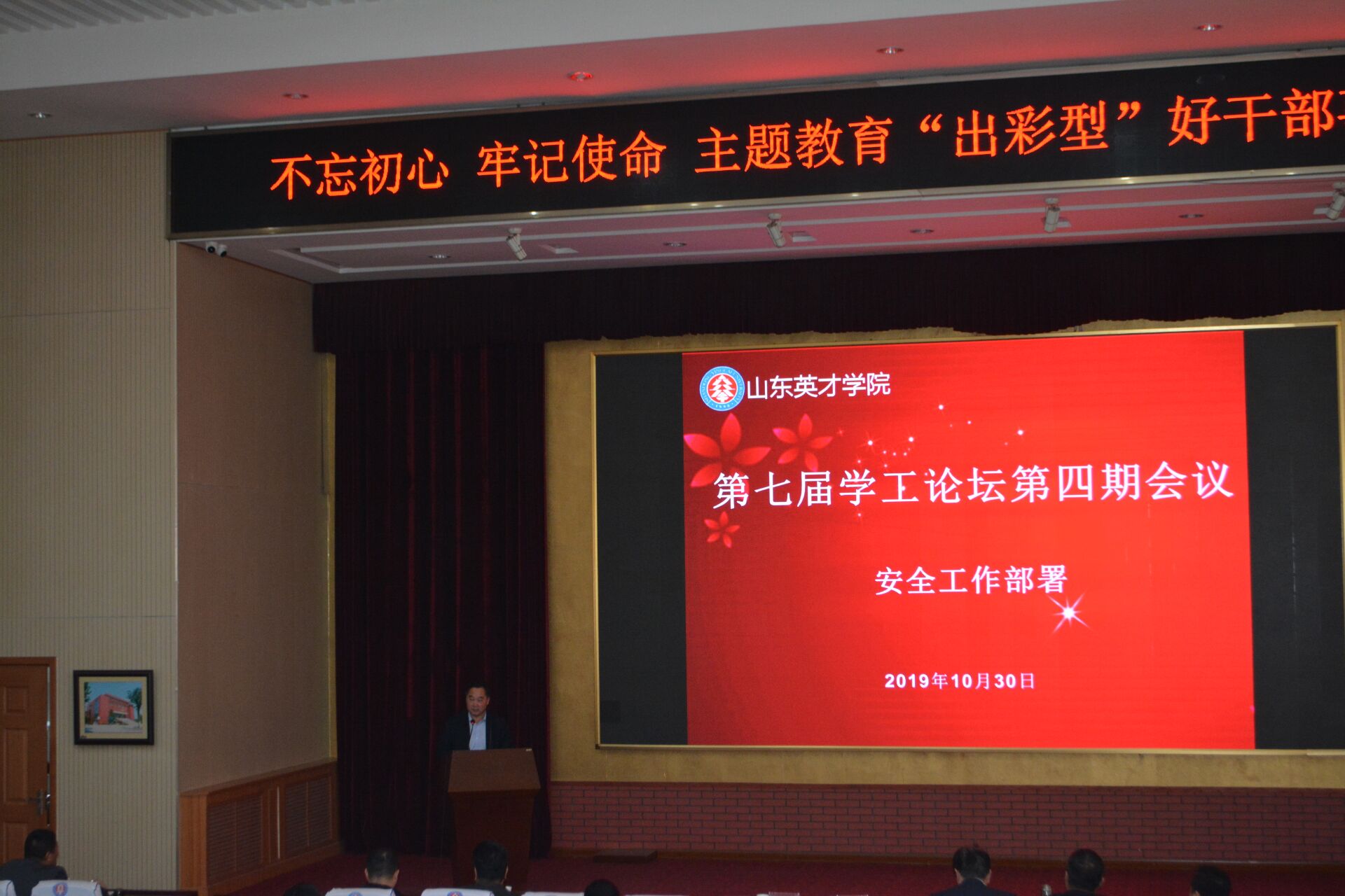 辅导员工作室授牌仪式 秦路畅谈辅导员交流培训心得体会 王青作辅导员岗位认识和学生日常管理经验交流 王坤丽副书记作劳动教育方案解读 邵占荣副处长解析综合素质测评方案 张兴虎副校长讲话 陈文华校长助理讲话 孙玉山处长部署学生安全工作 龙新良处长部署学生管理工作 10月30日上午365官网举办了不忘初心 牢记使命 主题教育“出彩型”好干部事迹报告会暨第七届学工论坛第四期会议。会议在南校区学术报告厅、北校区学术报告厅同步视频直播,副校长张兴虎,党委副书记、副校长孙玉香,校长助理陈文华,二级学院专职书记(副书记)、基层团委书记、全体辅导员、社会实践指导教师和学生工作处(团委)全体人员参加了会议。 会议首先为365官网首批设立的14个辅导员工作室授牌。经过二级学院立项申请,学生工作部通过对工作计划和项目申请审查,决定首批设立14个辅导员工作室。辅导员工作室将以365官网学生工作实际为基础,以工作室成员集体智慧为依托,针对新形势下365官网大学生思想政治教育面临的热点和难点问题进行专题研究,探索365官网大学生思想政治教育工作的新途径、新方法。 接着,学生工作部秦路从“努力、主动和提升”三个方面,就2019年上半年在山东大学参加教育部组织的辅导员交流培训心得体会和大家进行交流。商学院王青以“辅导员如何做好学生管理工作”为主题,从辅导员的“定位、职责和工作理念”三个方面和大家进行分享。 校团委副书记王坤丽以“劳动教育”为主题从“劳动教育是什么,为什么开展劳动教育,目前365官网劳动教育推进情况和开展劳动教育的愿景”四个方面为大家深入解读劳动教育及相关措施。学生工作部副处长邵占荣从“综合素质测评指导思想,综合素质测评基本原则,综合素质测评组织与实施和综合测评评分细则”四个方面为我们系统分析了综合素质测评方案。 张兴虎副校长在总结讲话中期望学工队伍加强学习、不断完善和提升自我;加强研究,不断积累转化成果;加强落实、担当作为,营造烘托良好的工作氛围。用制度规范人,用理念引领人,用活动带动人,用情感感化人,推动新形势下学生教育管理工作不断向前发展。 陈文华校长助理希望全体学工人“不忘初心 牢记使命”,真正承载起做好学生思想政治教育和一线管理的重要使命。 安全管理处孙玉山处长、学生工作部龙新良部长分别安排了有关工作。