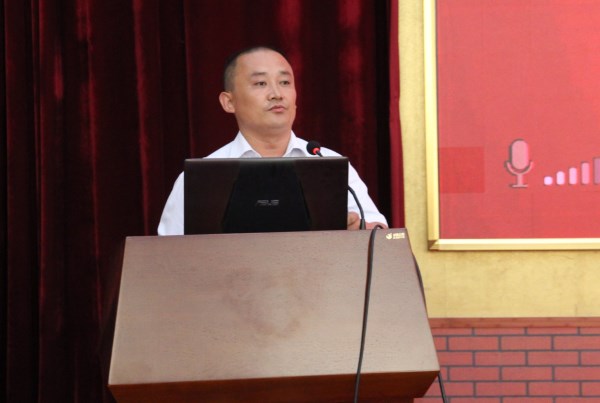 外国语学院党总支副书记曲永存以《建立健全各项规章制度――快乐工作每一天》为题作报告