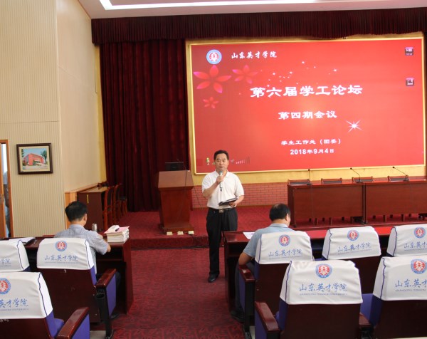 论坛第一阶段由五位学工队伍的领导和老师作学生工作经验分享与交流。经济与管理学院王广柱书记以《如何做好新生入学教育工作》为主题,提议辅导员在开学初期可以从七个方面有针对性的对新生进行入学适应性教育,帮助学生完成角色转换;外国语学院曲永存书记以《建立健全各项规章制度――快乐工作每一天》为主题,以所在二级学院开展的工作为示范,向我们展现了学生管理工作中最贴近学生的一面;医学院王君书记以《当代大学生礼仪养成教育简论》为主题,讲解礼仪养成教育的途径,倡导我们深处齐鲁礼仪之邦,做文明守礼的新时代大学生。接下来由商学院李琳玉老师分享了自己参加山东省高校第二十一期辅导员岗前培训班的体会,讲出了新入职辅导员爱学生、爱工作、爱自己的工作体会;学前教育学院董晓培老师在上半年赴中国石油大学参加了为期半年的第十七期辅导员国内高校交流,结合学习经验,让我们看到了与其他高校辅导员的差距,呼吁辅导员从自身实际出发,提升理论水平和实战经验。五位老师以自身工作经验,从不同角度展开交流,为我们做好新学年的学生教育提供了重要借鉴经验,为辅导员的发展提供了方向。 论坛第二阶段由安全管理处马先进处长、学生工作处龙新良处长、常务副校长刘翠兰对近期工作进行了总结和布置。马处长对近期安全工作进行总结,强调辅导员老师应及时了解学生信息、加强值班巡查和公寓安全管理,尤其在处理学生事务时要谨慎妥当,提高应对突发事件的能力,主动担当。龙处长对近期公寓入住、迎新工作、军训工作进行了总结,指出学生工作要围绕学校中心工作,服务学校发展大局,“出精品,树品牌,育英才”,提升学生综合素质,开拓学生国际视野,教育学生弘扬“学在英才 心系国家”的家国情怀;各学院与部门之间要上下联动,形成育人合力,站位新时代,开创新学期学生工作新局面。并提出六点要求:一是提高认识,做政治上的明白人,坚持立德树人;二是要大力改革创新,提升学生工作的吸引力、感染力、时效性;三是要进一步培育打造学生工作平台;四是强化日常管理,确保安全问题,五是抓好学生干部建设,建设好学生骨干的桥梁作用;六是以考研、大赛为抓手,坚定不移地开展学风建设,促进良进良好学风的形成。