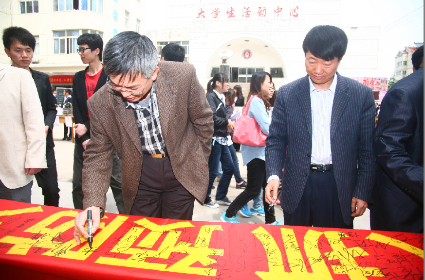 为落实学院大学生宿舍文化消防安全活动的通知精神,切实增强师生的消防安全意识,不断加强学生公寓的消防安全管理,425,学院在大学生活动中心前广场举办了“大学生宿舍文化消防安全宣传展暨大型签名活动”。学院副院长李崇银、学生处处长王冠良、副处长任文友、王鹏及各二级学院行政院长、辅导员、学院大学生宿管会、各二级学院宿管会骨干及广大师生参加了此次活动。
