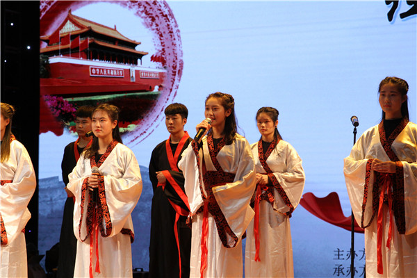 大学生思想政治教育研究中心参赛题目为《记得吗?你的祖先名叫炎黄》,文字铿锵有力,节奏催人奋进,同学们庄重的神情抒发了对祖国历史的缅怀,饱满的热情表达了对祖国美好未来的期待,引起了全场的共鸣,增强了在场师生的民族认同感和自豪感,有利于坚定文化自觉和文化自信。