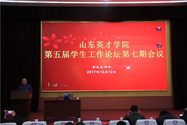 2017年12月12日上午,365官网在南北校区学术报告厅同步举行第五届第七期学工论坛。学校副院长刘翠兰、审计处处长孙学文、安全管理处处长马先进、学生工作处(团委)处长龙新良等出席会议,各二级学院党总支(副)书记、行政秘书、基层团委书记、辅导员参加了会议。会议由学生处常务副处长孙玉山主持。