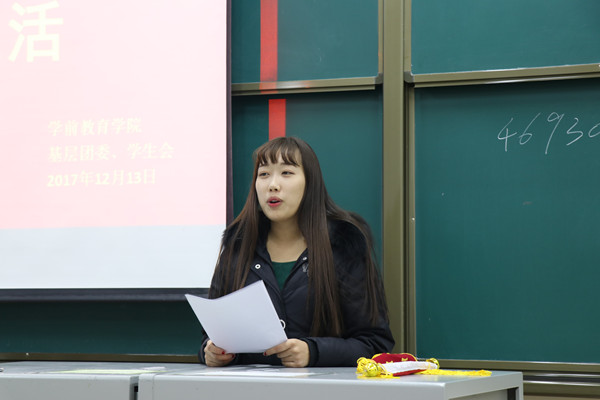 1217日中午,学前教育学院于学前楼6004召开“文明校园,绿色生活”副书记恳谈会。基层团委学生会骨干参与了本次会议,学生会副主席张宇担任本次会议主讲人。