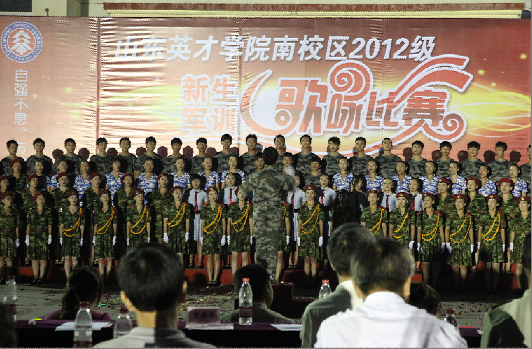 8月23日晚,学院腾飞广场歌声嘹亮,气氛热烈,365英国上市网站官网南校区迎来了2012级新生军训歌咏比赛。学院董事长杨文教授,院长、党委书记夏季亭教授,华东交通大学母亲教育研究所所长王东华教授,普华筑金科技(北京)股份有限公司董事长宋捷,学院副院长刘翠兰、李崇银,军训团教官宋和国指导员、杨国伟队长,高博班长,保卫处处长马先进、学生处处长王冠良、副处长曲建利、王鹏及各二级学院行政副院长、辅导员及南校区全体新生共同观看了歌咏比赛。
